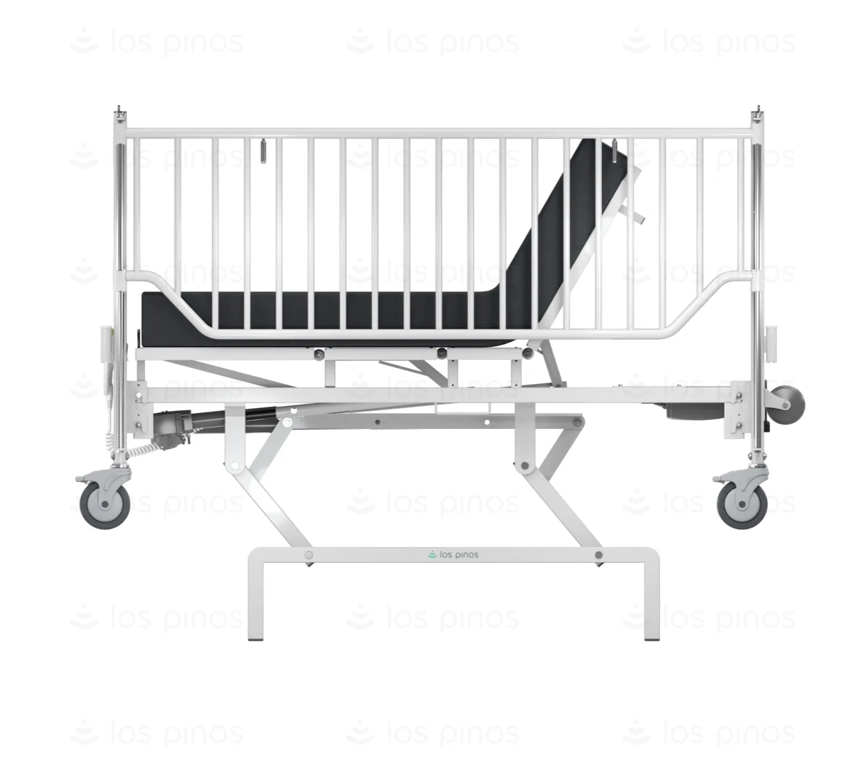Equipada con todos los movimientos eléctricos necesarios para garantizar un óptimo cuidado, esta cama ofrece la posibilidad de ajustar la altura, inclinación del espaldar, elevación de las piernas de forma sencilla y precisa.