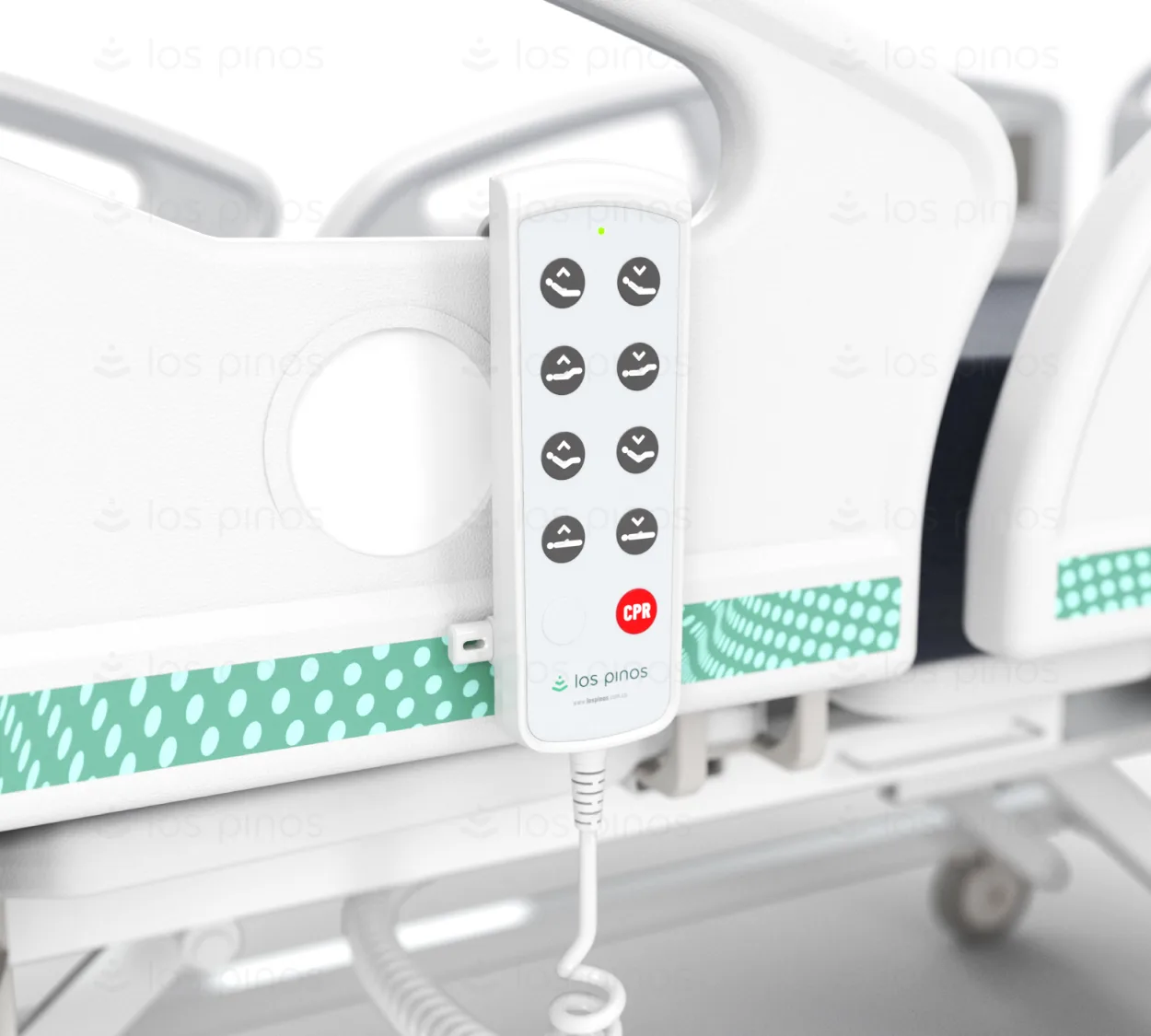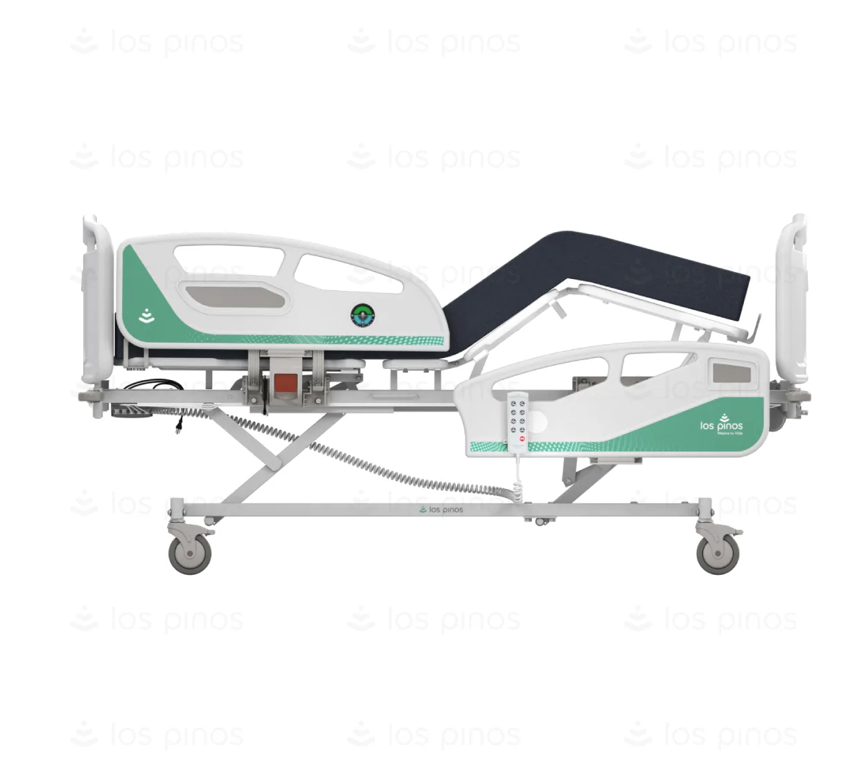 Los movimientos de la cama se accionan fácilmente con un control eléctrico, permitiendo a los profesionales de la salud ajustar la posición según sus necesidades y facilitar el cuidado del paciente.