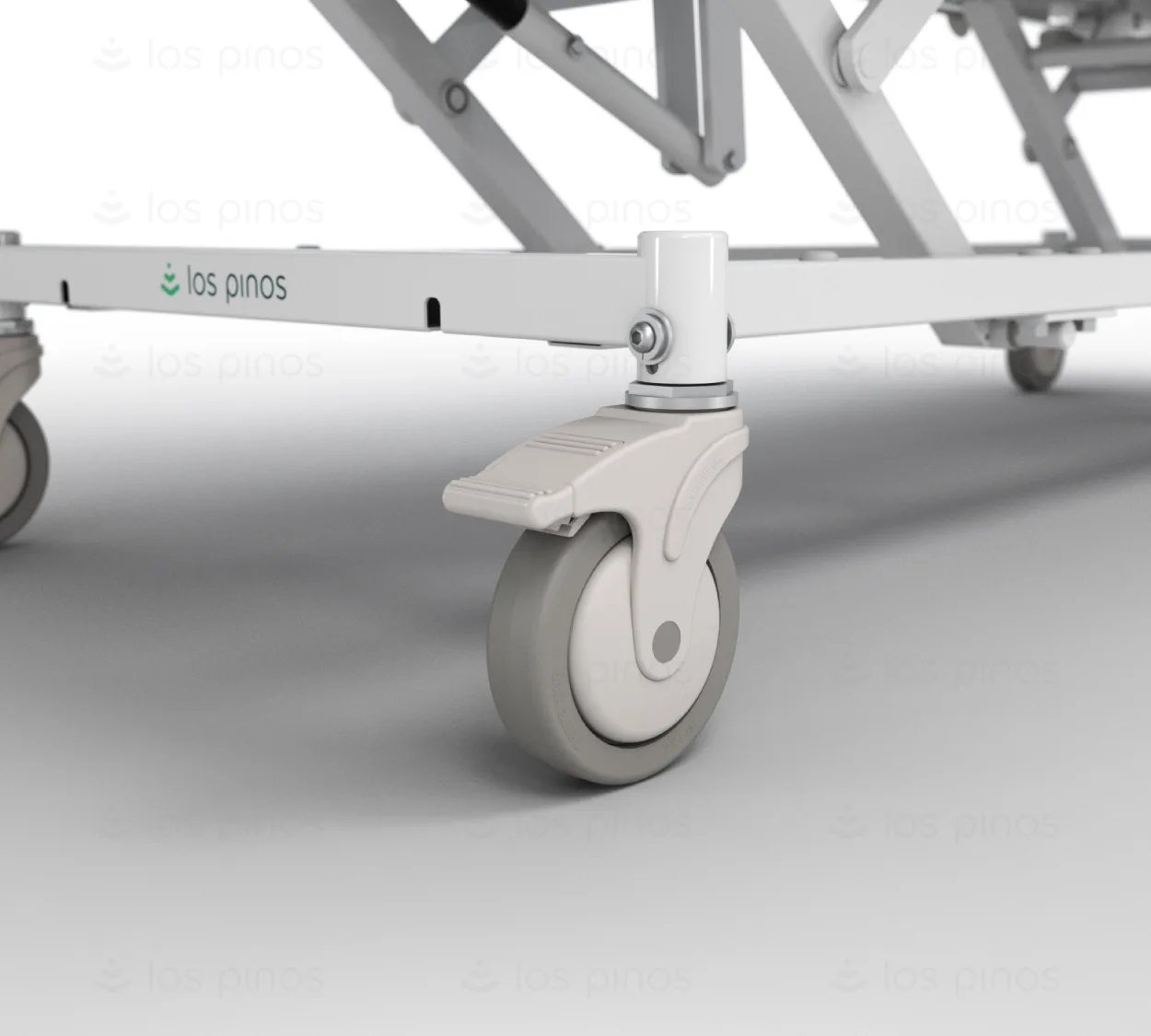 La cama posee cuatro (4) ruedas giratorias de 5” de diámetro con