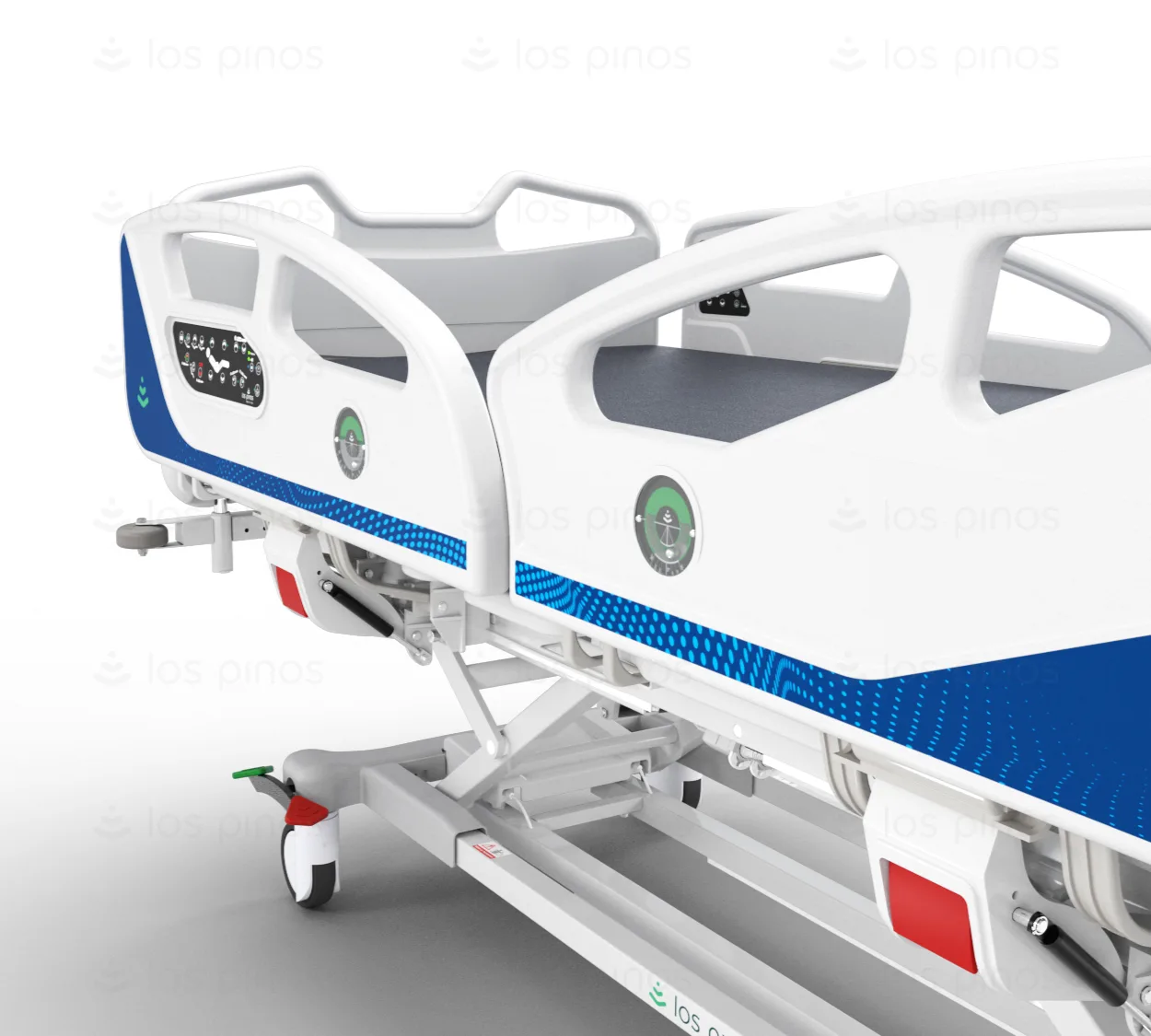 Los controles externos, ubicados de manera accesible en las barandas, permiten al personal médico ajustar la posición de la cama de manera rápida y eficiente.