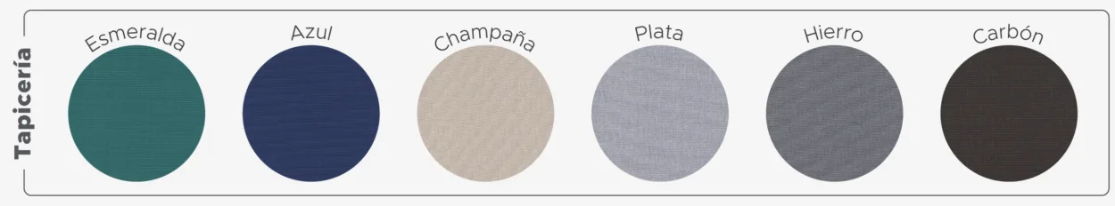 Tapizada en tela vinílica de alta resistencia, fácil de limpiar y mantener, con espuma de alta densidad que garantiza un confort duradero.