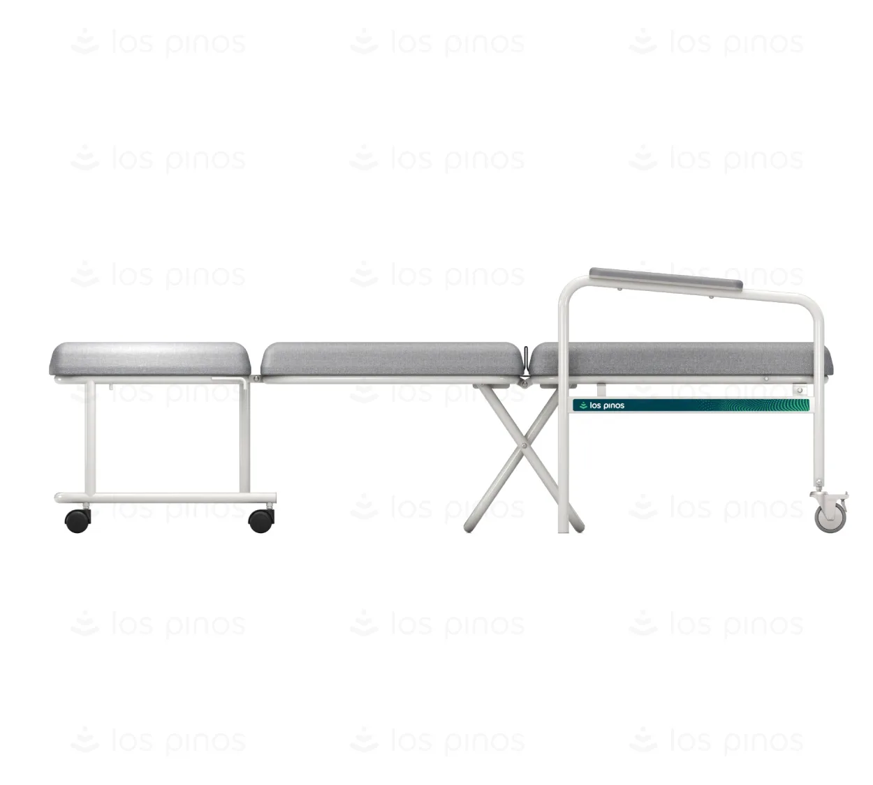 Equipada con dos ruedas traseras con freno individual para un bloqueo seguro y fácil transporte, y cuatro ruedas adicionales en la zona de los pies que facilitan el despliegue de todas sus posiciones sin esfuerzo.