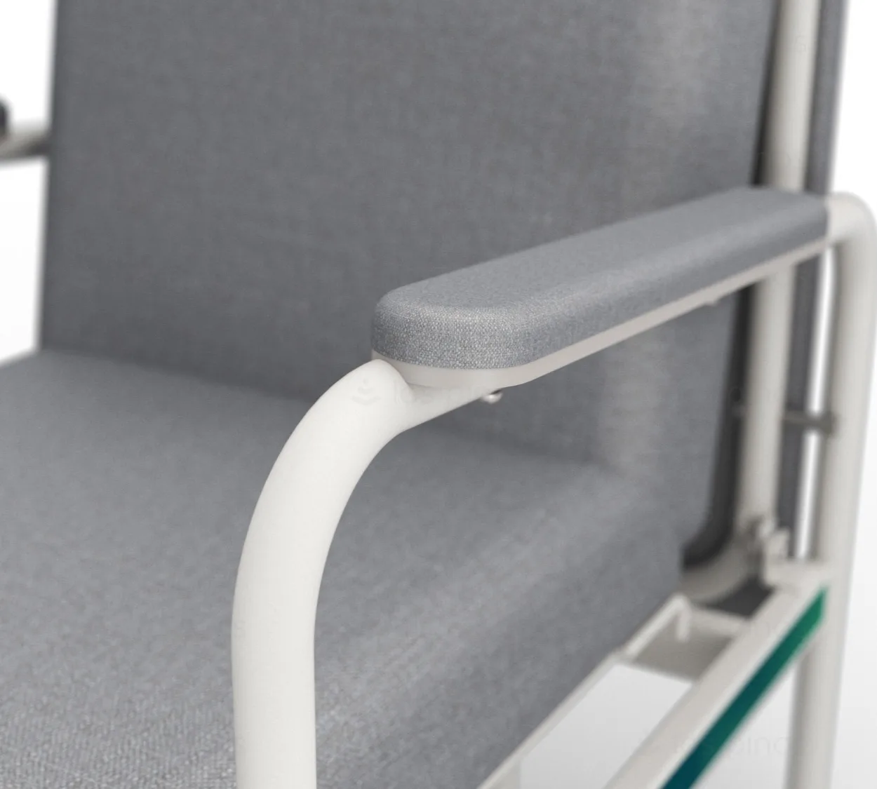 Cuenta con apoya brazos antideslizantes e inclinados ergonómicamente para brindar mayor confort y apoyo seguro al cuidador.